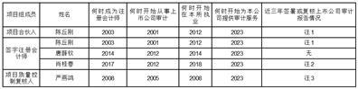注1:2020-2022年,签署金新农、西南证券等上市公司年度审计报告;2020-2022年,复核天润工业、百大集团、镇洋发展等上市公司年度审计报告。