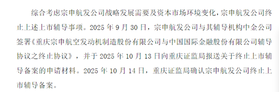 图片系AI生成10月14日晚间,宗申动力(001696.SZ)公告,控股子公司宗申航发终止IPO进程,此举系“综合考虑公司战略发展需要及资本市场环境变化”。当日,重庆证监局已确认该公司终止上市辅导备案。
