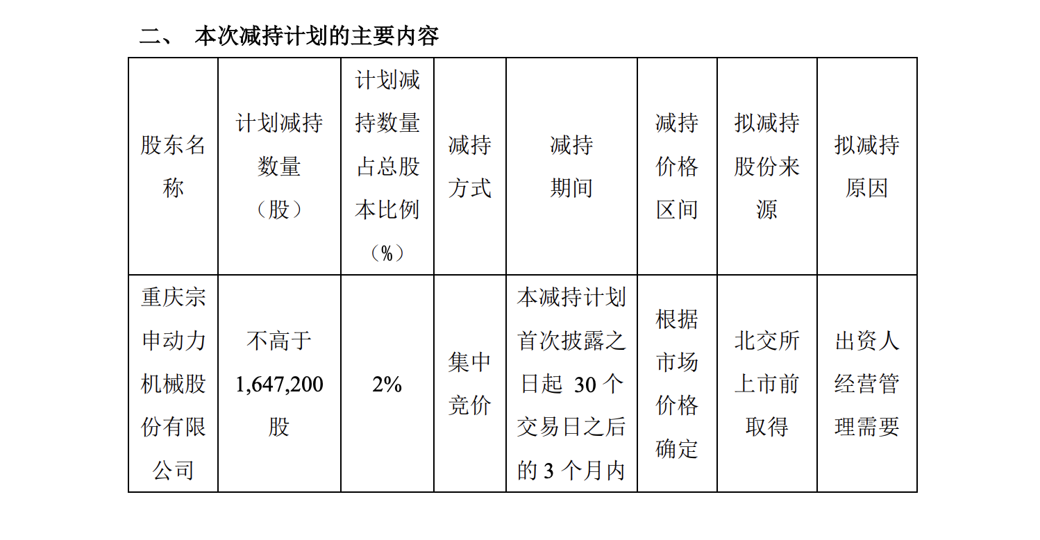 截至公告披露日,宗申动力持有公司股份1286万股,持股比例为15.6144%,当前持股股份来源于公司在北交所上市前取得。