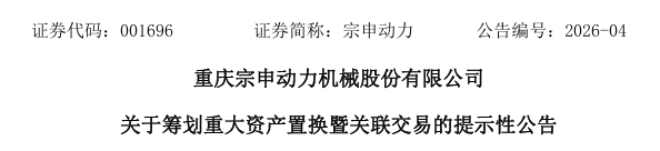宗申动力筹划重大资产重组 公司股票不停牌!