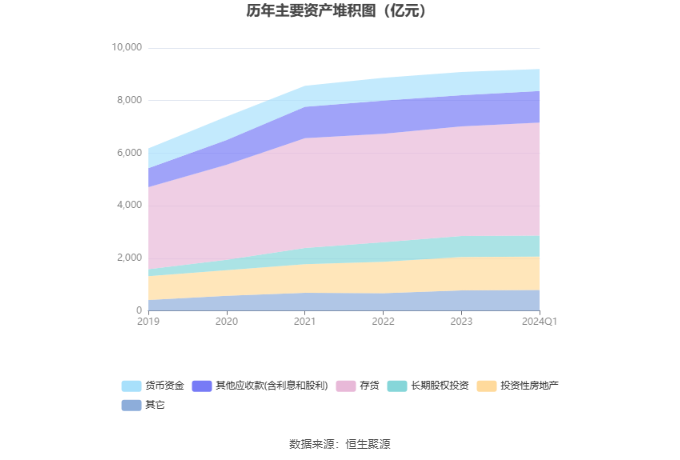 2024年第一季度,公司经营活动现金流净额为-106.11亿元,同比减少188.84亿元,主要系销售回款同比减少所致;筹资活动现金流净额62.73亿元,同比增加43.85亿元,主要系归还合作方往来款同比减少所致;投资活动现金流净额-7.00亿元,上年同期为7.19亿元,主要系收到的联合营公司往来款同比减少所致。