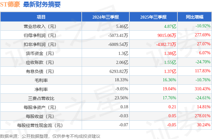 ST德豪(002005)2025年三季报简析:净利润同比增长277.69%