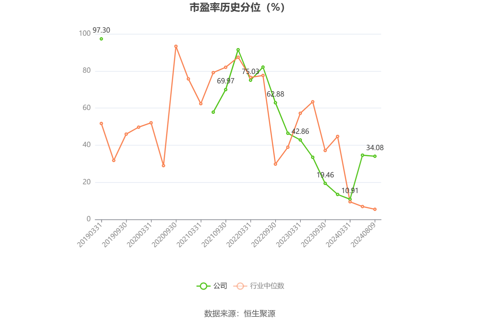 市盈率为负时,不显示当期分位数,会导致折线图中断。