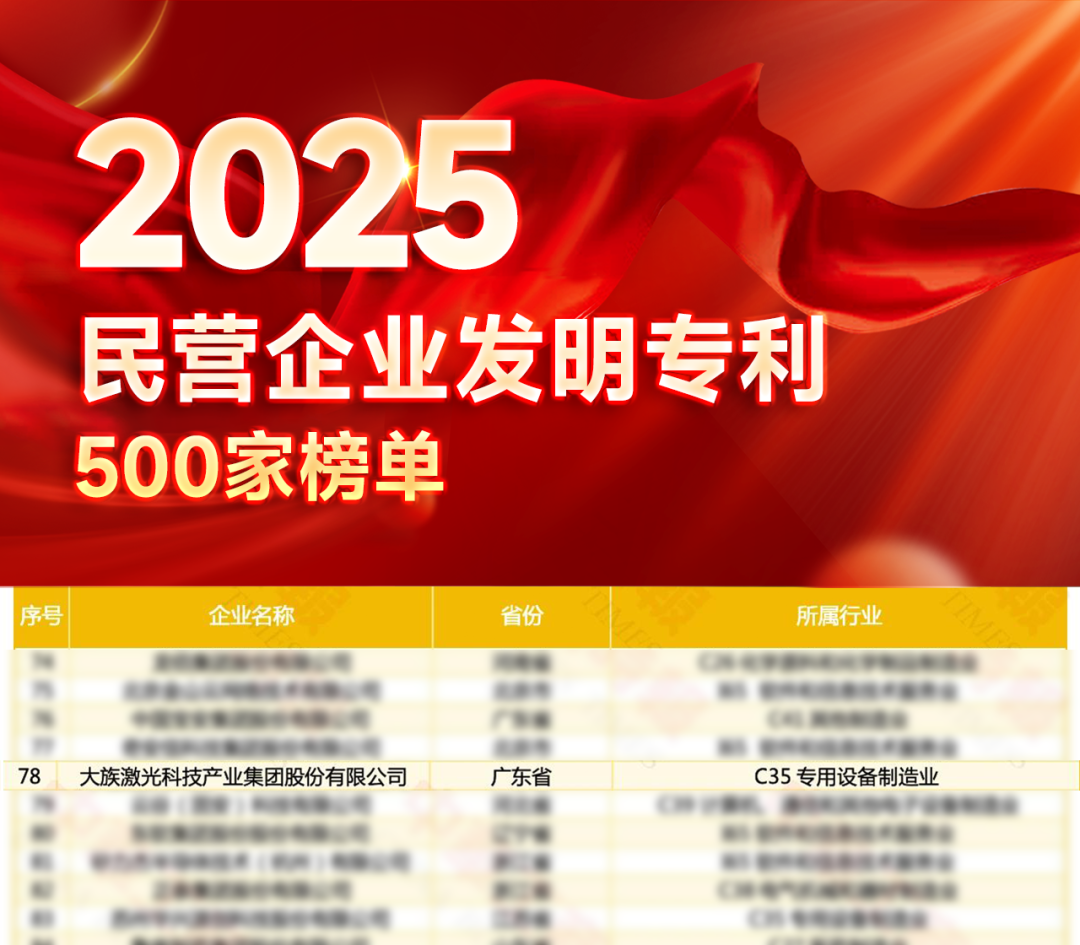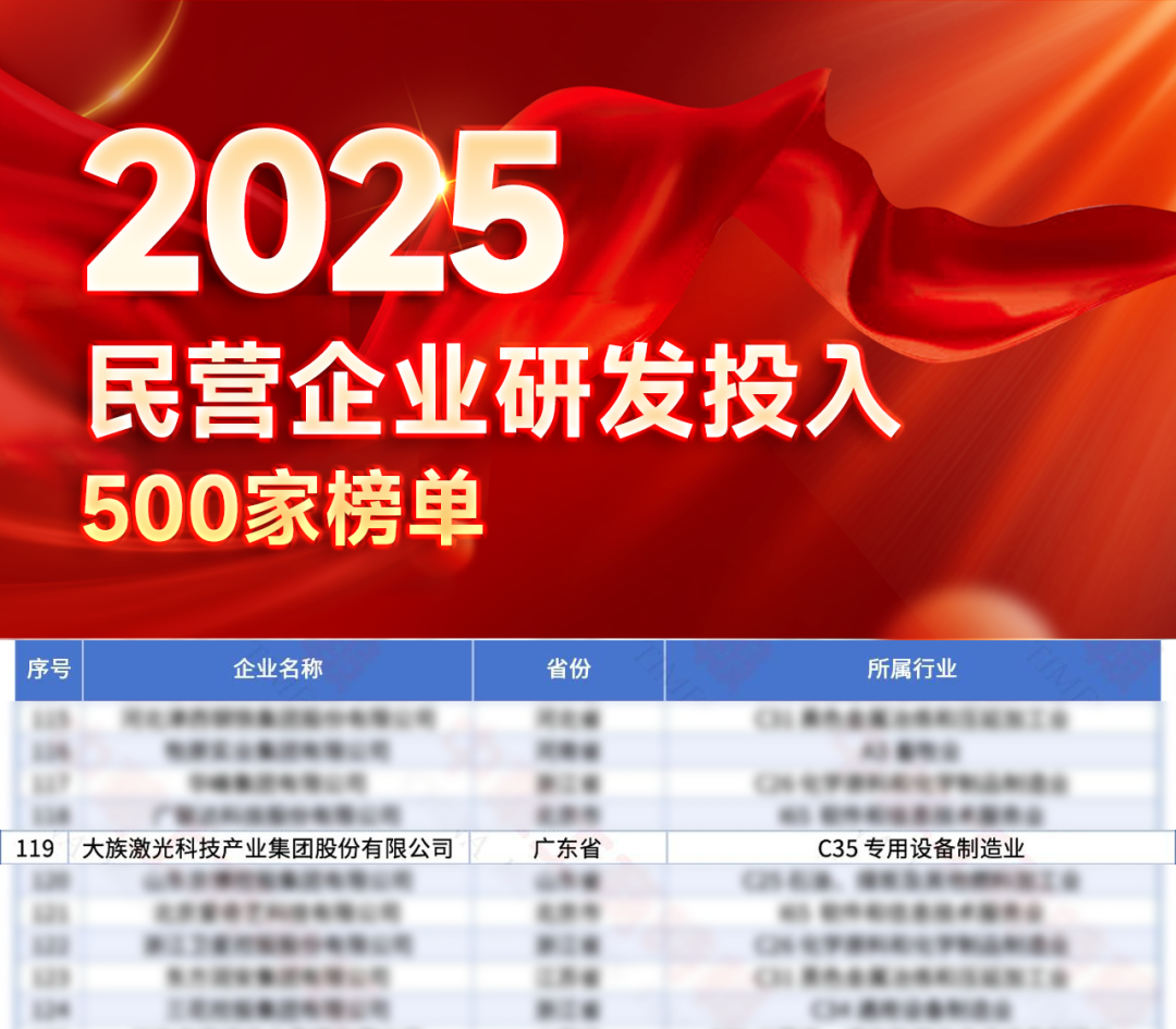 【会员风采】双料殊荣!大族激光荣登“2025民营企业研发投入和发明专利500家”榜单