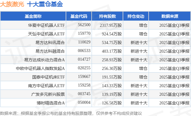 重仓大族激光的前十大公募基金请见下表: