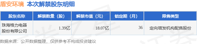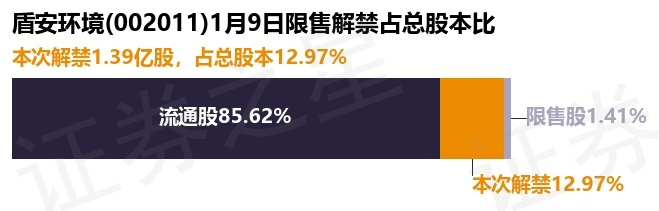 盾安环境(002011)1.39亿股限售股将于1月9日解禁,占总股本12.97%