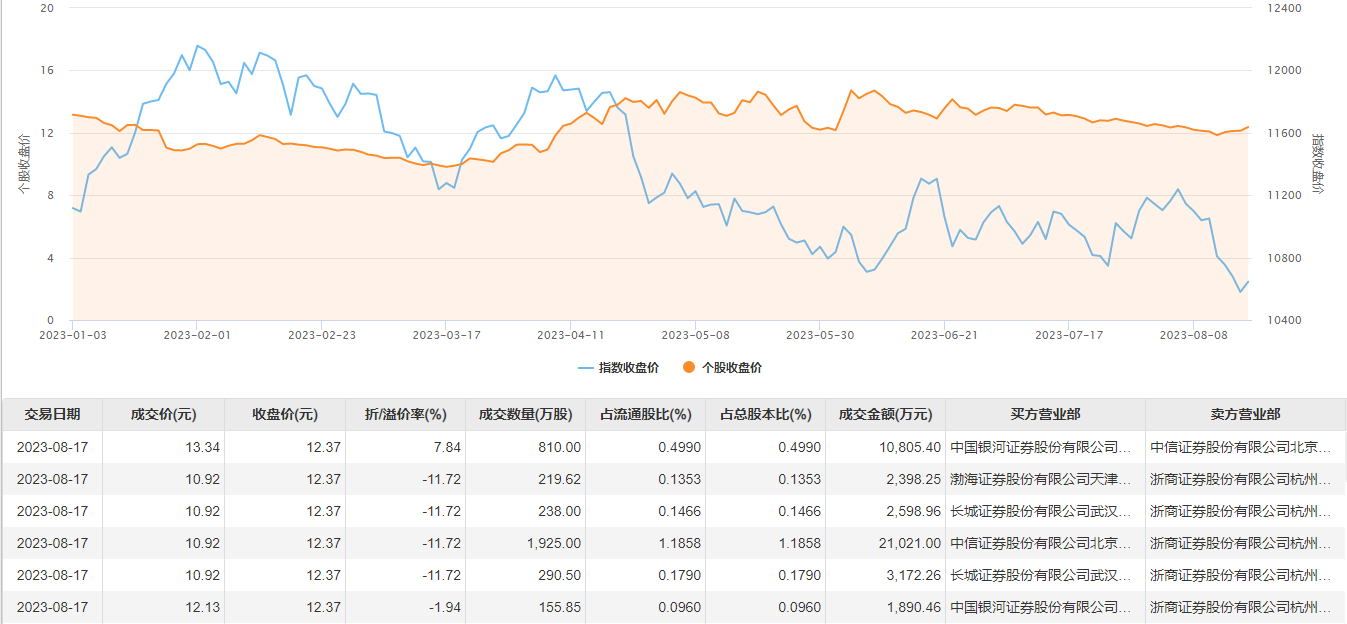 协鑫能科8月17日大宗交易成交3638.97万股,成交额4.19亿元,占当日总成交额的69.73%,成交均价11.51元,较市场收盘价12.37元折价6.95%,其中最高成交价13.34元,最低成交价10.92元。