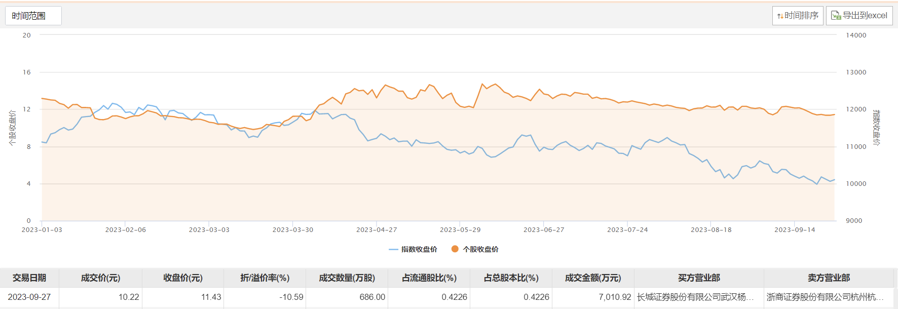 今日大宗交易成交686万股,成交额7010.92万元,占当日总成交额的30.81%,成交价10.22元,较市场收盘价折价10.59%。
