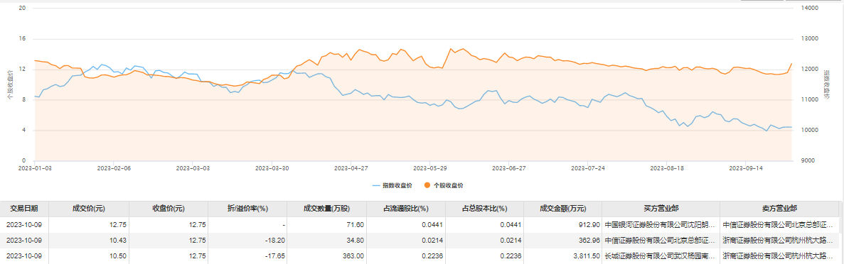 10月9日,协鑫能科今日大宗交易成交469.4万股,成交额5087.36万元,占当日总成交额的7.9%,成交均价10.84元,较市场收盘价折价14.98%,其中最高成交价12.75元,最低成交价10.43元。