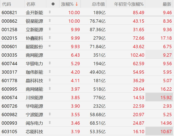 A股电力股逆势走强,金开新能、协鑫能科等多股涨停