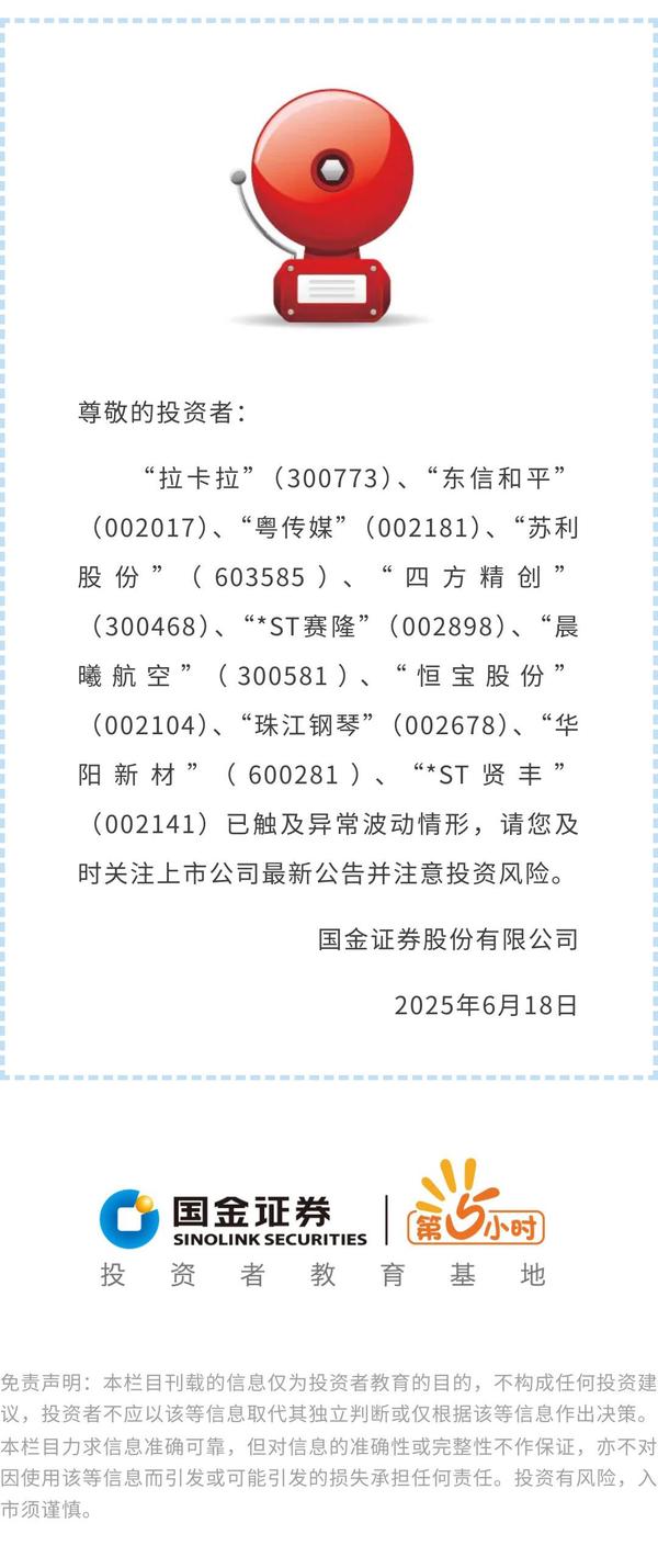关于“拉卡拉”、“东信和平”等证券交易异常波动的风险提示