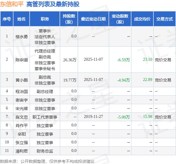 东信和平近半年内的董监高及核心技术人员增减持详情如下: