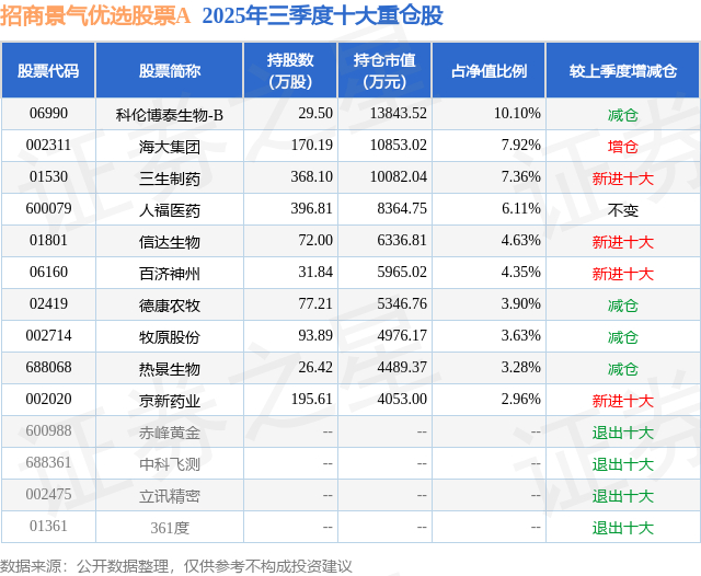根据2025基金Q3季报公募基金重仓股数据,重仓该股的公募基金共35家,其中持有数量最多的公募基金为招商基金的招商景气优选股票A。招商景气优选股票A目前规模为10.2亿元,最新净值0.6189(10月30日),较上一交易日下跌1.21%,近一年上涨22.82%。该公募基金现任基金经理为付斌。付斌在任的基金产品包括:招商先锋混合,管理时间为2015年1月14日至今,期间收益率为74.9%;招商丰韵混合A,管理时间为2019年3月19日至今,期间收益率为57.3%;招商兴和优选1年持有期混合,管理时间为2021年2月1日至今,期间收益率为-30.29%。