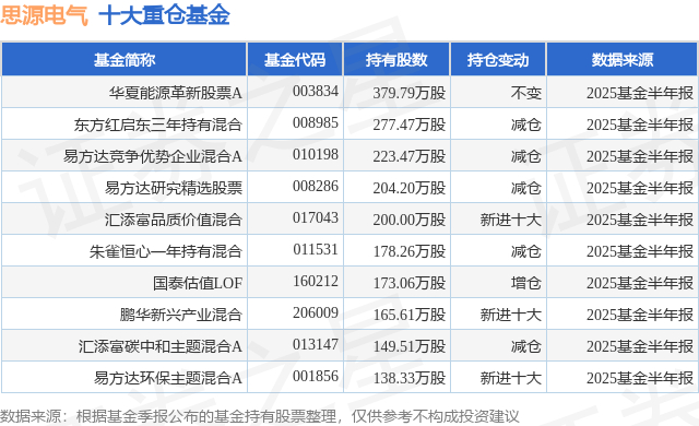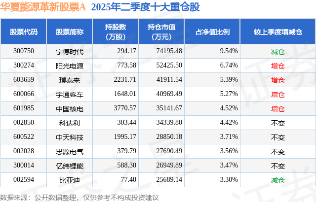 根据2025基金半年报公募基金重仓股数据,重仓该股的公募基金共78家,其中持有数量最多的公募基金为华夏基金的华夏能源革新股票A。华夏能源革新股票A目前规模为75.33亿元,最新净值3.055(10月20日),较上一交易日上涨0.96%,近一年上涨26.92%。该公募基金现任基金经理为杨宇。杨宇在任的基金产品包括:华夏新能源车龙头混合发起式A,管理时间为2021年9月15日至今,期间收益率为9.87%;华夏清洁能源龙头混合发起式A,管理时间为2023年8月22日至今,期间收益率为35.34%;