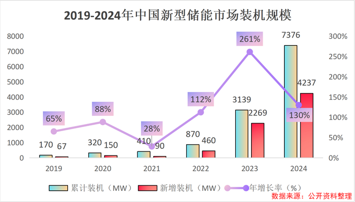 2023年我国新型储能市场新增装机2269MW,累计装机达到3139MW,新型储能市场累计装机规模的年增长率高达261%,此后也一直保持着较高的增长速度。