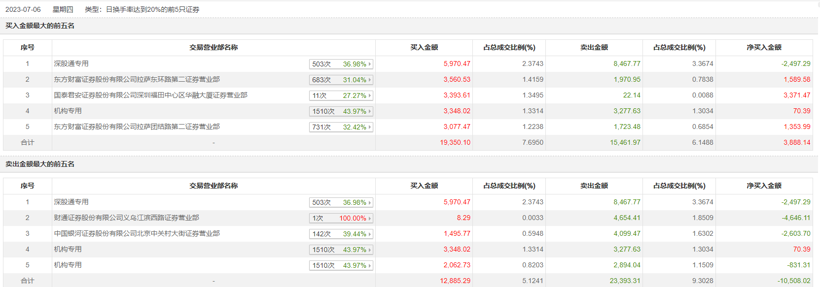 具体来看,机构买入5410.75万元,卖出6171.67万元,合计净卖出760.92万元。此外,深股通专用、东方财富证券拉萨东环路第二证券营业部分别买入5970.47万元、3560.53万元;深股通专用、财通证券义乌江滨西路证券营业部分别卖出8467.77万元、4654.41万元。
