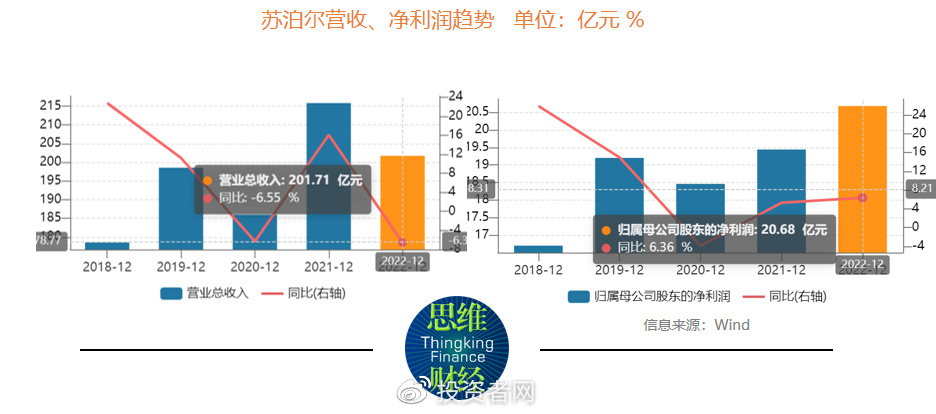 根据2022年年报,苏泊尔实现营收201.7亿元,同比下降6.55%,净利润20.68亿元,首次突破20亿元,同比增长6.36%。