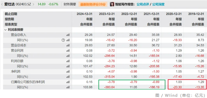 自此之后,爱仕达更是连续亏损3年。2021年至2023年,爱仕达累计亏损5.46亿元,几乎将2017年至2020年这4年间积累的利润(5.54亿元)全部亏完。