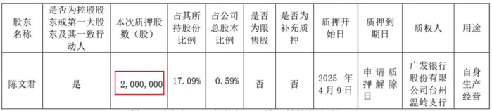 分红减少之后,陈合林家族又转向质押股票。今年4月9日,陈合林之子陈文君质押200万股公司股票,用于自身生产经营,但明确不是用于满足爱仕达生产经营相关需求。
