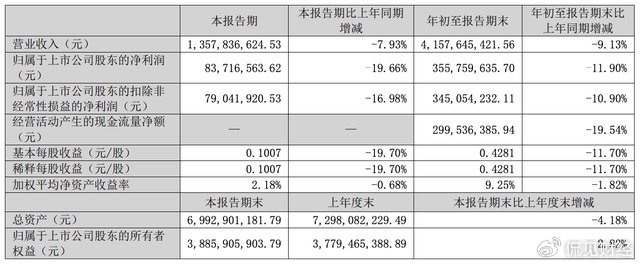 具体到第三季度,华帝股份实现营收13.58亿元,同比下滑7.93%;净利润为8371.66万元,同比下滑19.66%;扣非净利润为7904.19万元,同比下滑16.98%。