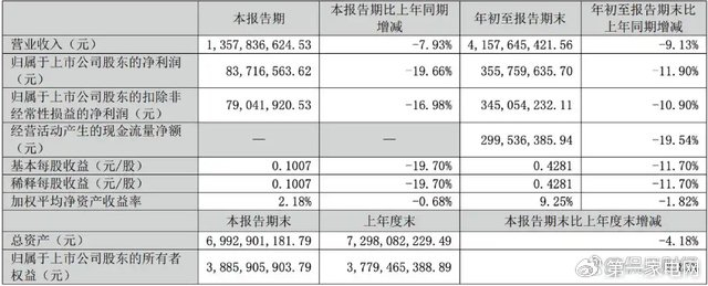 具体到第三季度,华帝股份实现营收13.58亿元,同比下滑7.93%;净利润为8371.66万元,同比下滑19.66%;扣非净利润为7904.19万元,同比下滑16.98%。