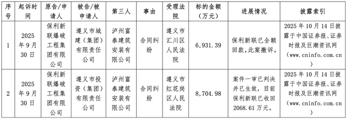 在前期诉讼中,保利新联爆破工程集团有限公司涉及的两起合同纠纷案件情况如下:
