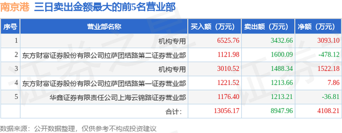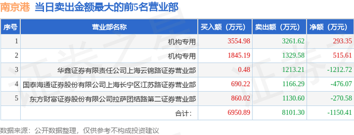 10月14日南京港(002040)龙虎榜数据:游资章盟主上榜