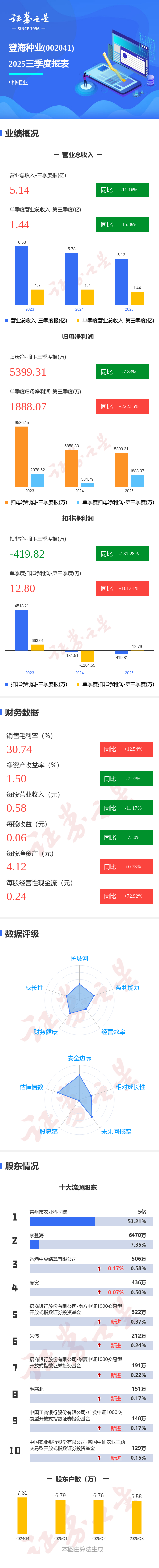 图解登海种业三季报:第三季度单季净利润同比增长222.86%