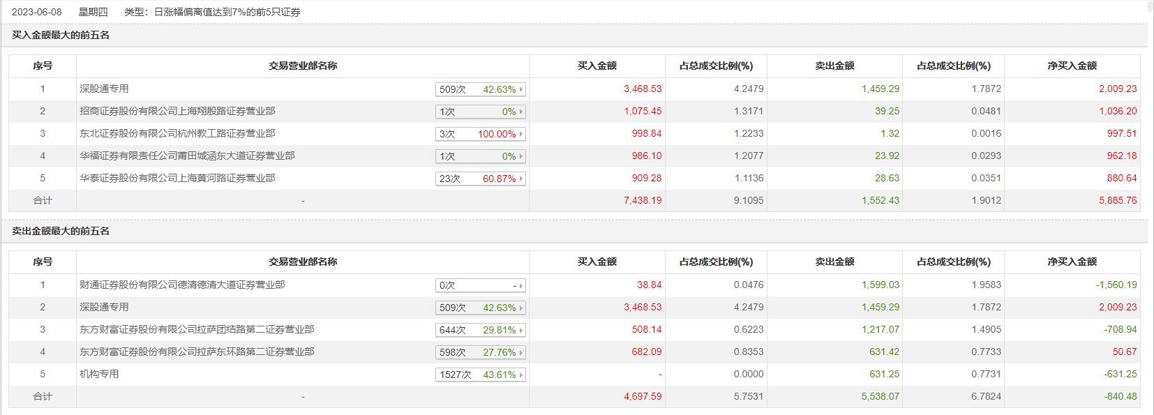 具体来看,机构合计净卖出631.25万元。此外,深股通专用、招商证券上海翔殷路证券营业部分别买入3468.53万元、1075.45万元;财通证券德清德清大道证券营业部、深股通专用分别卖出1599.03万元、1459.29万元。