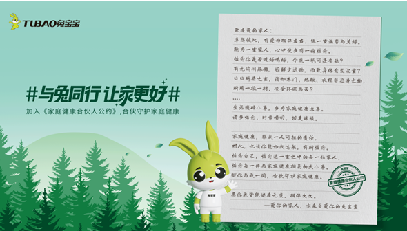 在这个兔宝宝中秋品牌节,兔宝宝诚挚邀请您加入家庭健康合伙人,签署《家庭健康合伙人公约》,一起为健康而努力!我们相信,只有健康的家庭,才能拥有幸福的生活。让我们携手共创一个更加健康、幸福的生活环境!