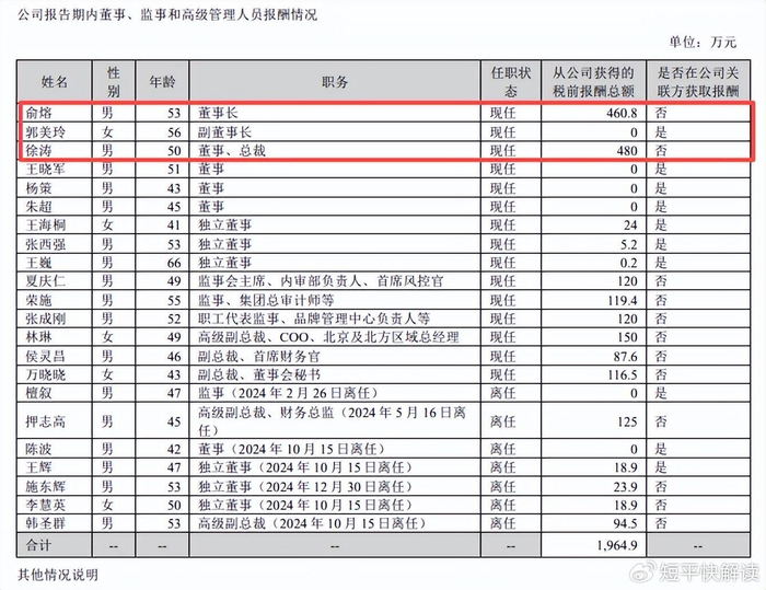 董事长俞熔、总裁徐涛薪酬遥遥领先。销售费用支出大头分别是人力成本、业务拓展费、广告宣传费,2025年中报分别为7.47亿元、1.3亿元、0.3亿元,同比分别下滑4.5%、20.21%、41.28%。