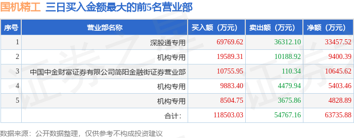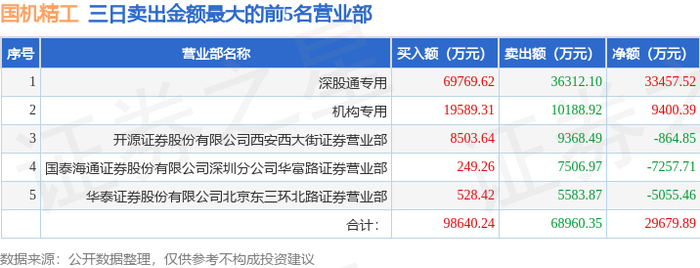 1月13日国机精工(002046)龙虎榜数据:机构净买入1.96亿元(3日),北向资金净买入3.35亿元(3日)