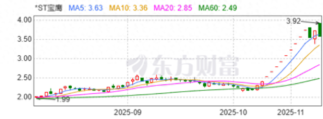 11月11日,深圳市宝鹰建设控股集团股份有限公司(*ST宝鹰)再度涨停,12个交易日内已录得11个涨停。10月30日至11月7日,*ST宝鹰三度发布发布公告,提示股票交易异常波动。