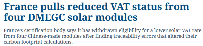 溯源出错!横店东磁光伏组件被移出法国5.5%低税率名录!
