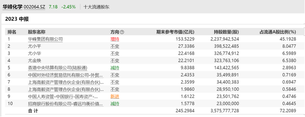 虽然毛利率下滑,但该公司仍得到高毅资产旗下邓晓峰和卓利伟的坚守。截至今年上半年末,邓晓峰在管的外贸信托-高毅晓峰鸿远集合资金信托计划、高毅晓峰2号致信基金对华峰化学持股数不变,分别为3549.99万股、3440.04万股。
