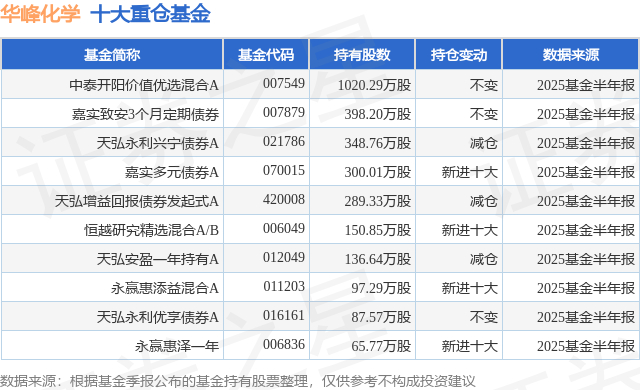 根据2025基金半年报公募基金重仓股数据,重仓该股的公募基金共17家,其中持有数量最多的公募基金为中泰证券(上海)资管的中泰开阳价值优选混合A。中泰开阳价值优选混合A目前规模为15.12亿元,最新净值2.081(9月30日),较上一交易日上涨1.31%,近一年上涨17.67%。该公募基金现任基金经理为田瑀。田瑀在任的基金产品包括:中泰兴诚价值一年持有混合A,管理时间为2021年2月8日至今,期间收益率为44.69%;中泰星宇价值成长混合A,管理时间为2021年6月2日至今,期间收益率为-8.0%。