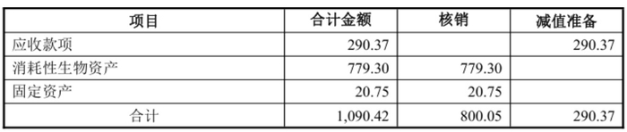獐子岛前三季度计提资产减值准备及核销部分资产具体情况(万元)