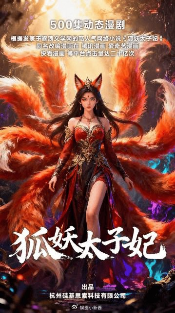 3. 500集AI动态漫剧《狐妖太子妃》:瞄准年轻受众市场,利用AI技术实现规模化生产——从剧本提炼、角色模型训练到分镜生成的全流程效率提升,将传统需数年的超长篇幅制作周期大幅压缩,同时通过AI动态优化与音效匹配,保障每集内容的叙事节奏与视觉品质。