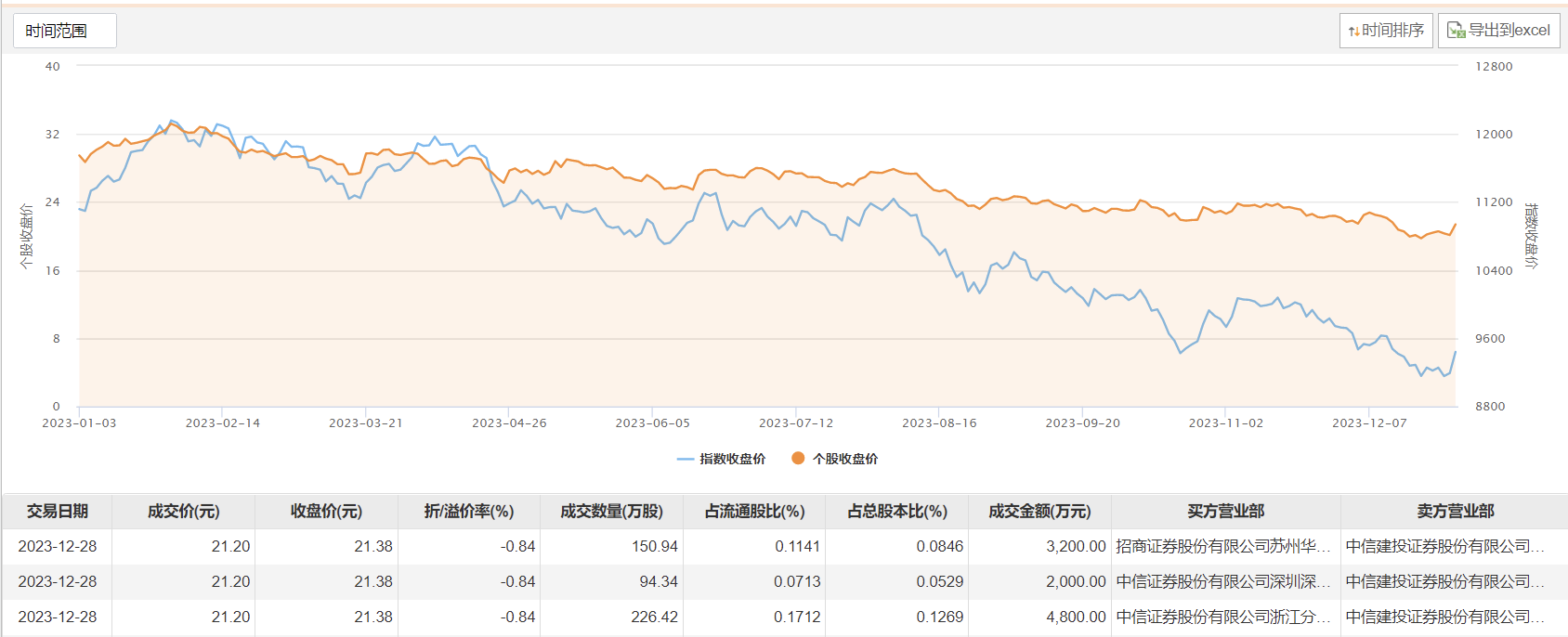 今日大宗交易成交471.7万股,成交额1亿元,占当日总成交额的18.04%,成交价21.2元,较市场收盘价折价0.84%。