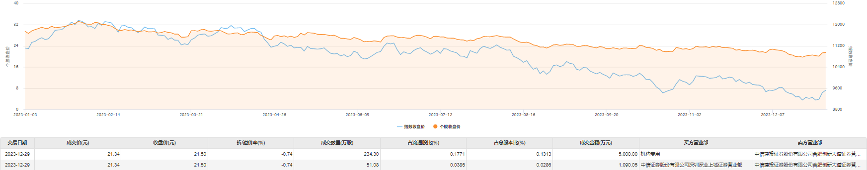 今日大宗交易成交285.38万股,成交额6090.05万元,占当日总成交额的16.96%,成交价21.34元,较市场收盘价折价0.74%。