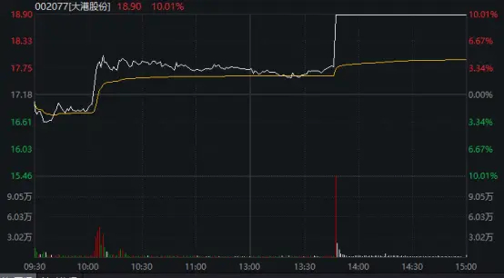 存储芯片概念继续保持活跃,部分个股午后异动。其中,大港股份(002077)在1分钟内直线拉升涨停。