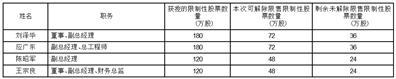 注:激励对象中董事及高级管理人员所持激励限售股份解除限售后,其买卖股份应遵守深圳证券交易所发布的《公司法》、《深圳证券交易所上市公司董事、监事和高级管理人员所持本公司股份及其变动管理业务指引》、《关于进一步规范中小企业板上市公司董事、监事和高级管理人员买卖本公司股票行为的通知》以及深圳证券交易所《股票上市规则》等相关法律法规的规定。