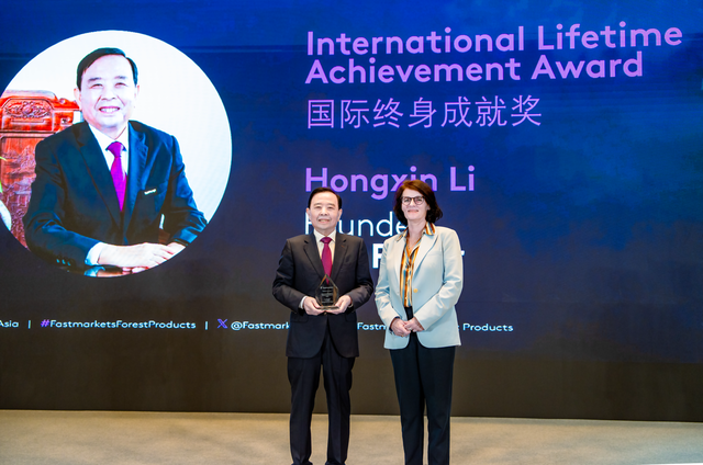济宁新闻网·更济宁讯(记者 马文洋) 9月24日,第24届Fastmarkets亚洲浆纸业峰会举行颁奖典礼,太阳纸业党委书记、创始人李洪信荣获Fastmarkets国际终身成就奖。该奖项是Fastmarkets颁发的最高荣誉之一,旨在表彰以远见卓识和坚定奉献塑造行业未来、树立创新标杆并推动可持续发展的人士,李洪信是亚洲浆纸行业首位荣获这一荣誉的企业家。