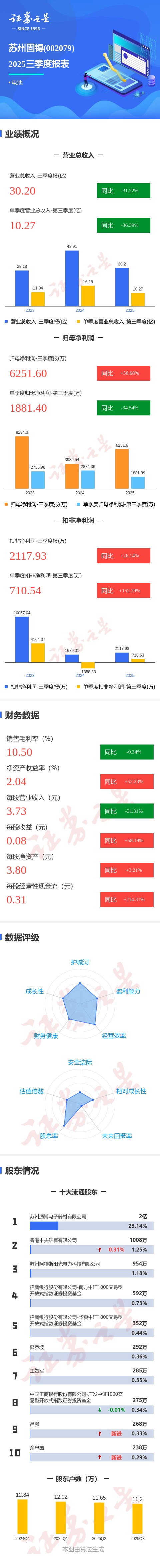 图解苏州固锝三季报:第三季度单季净利润同比下降34.55%