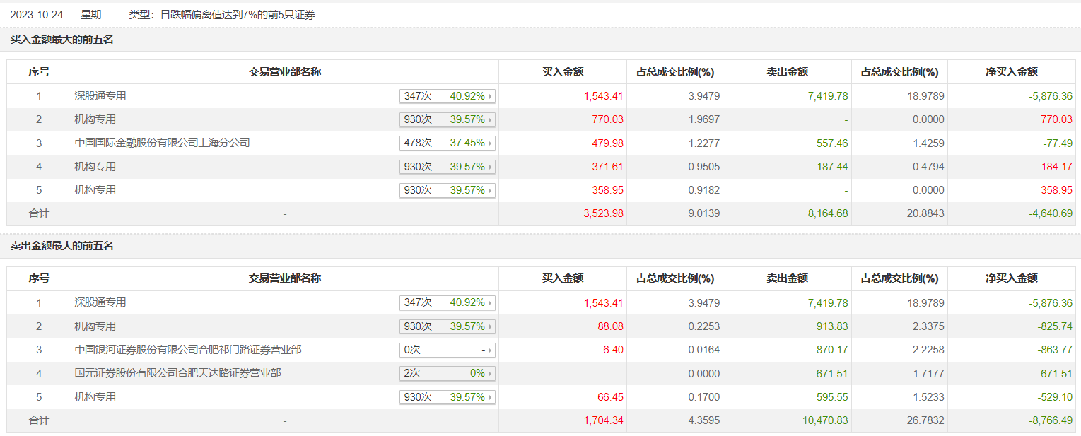 中材科技10月24日跌7.95%,全天换手率达1.37%,振幅达6.52%。龙虎榜数据显示,营业部席位合计净卖出7530.82万元。其中,机构买入1655.13万元,卖出1696.81万元,合计净卖出41.68万元。此外,深股通专用、中国银河证券合肥祁门路证券营业部分别卖出7419.78万元、870.17万元;深股通专用、中国国际金融上海分公司分别买入1543.41万元、479.98万元。