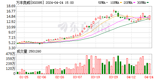 万丰奥威:一季度归母净利润同比增长1.25%