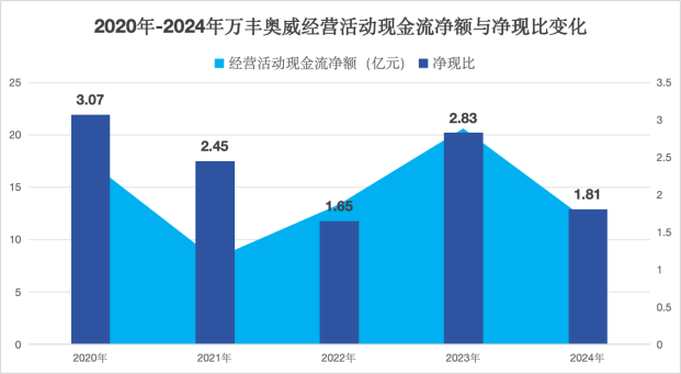 充沛现金流与较高的回款质量,是万丰奥威持续收购的底气。近些年来,万丰奥威净现比常年在1.5之上,2023年公司经营活动现金流净额达到20.6亿元。