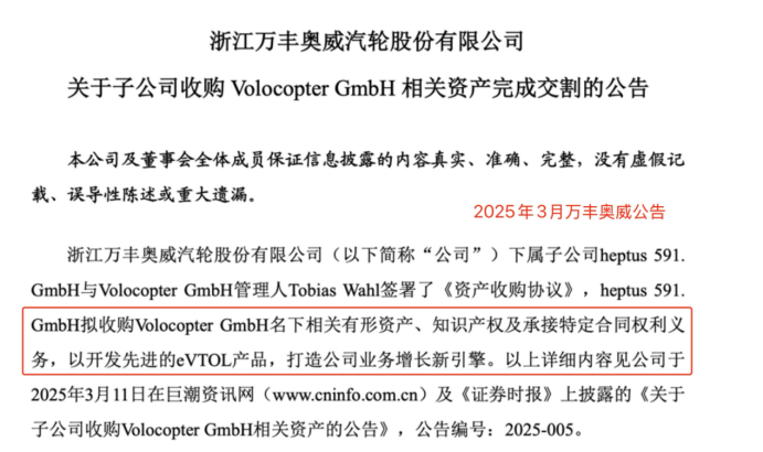 无心插柳柳成荫的是,新能源汽车和低空经济领域业务的双轨并行,令万丰奥威收购Volocopter获得“1+1>2”的效果。