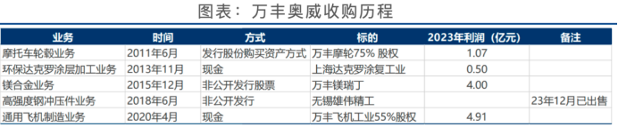 下图可知,万丰奥威摩托车轮毂业务和镁合金制造等业务均为收购而来。不论是对海内还是海外资产的收购,公司已经“轻车熟路”。