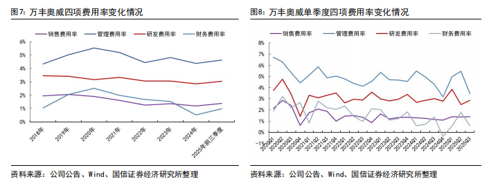 2025Q3,公司四费率环比-2.8pct。2025年前三季度,公司四费率为10.04%,同比+0.14pct,其中销售/管理/研发/财务费用率分别为1.38%/4.62%/3.03%/0.99%,同比分别变动+0.16/-0.27/+0.18/+0.08pct。分季度看,2025Q3公司四费率为8.30%,同比-1.53pct,环比-2.81pct,其中销售/管理/研发/财务费用率分别为1.39%/3.46%/2.85%/0.59%,同比分别变动+0.26/-0.85/-0.16/-0.79pct,环比变动+0.02/-2.01/+0.37/-1.18pct。